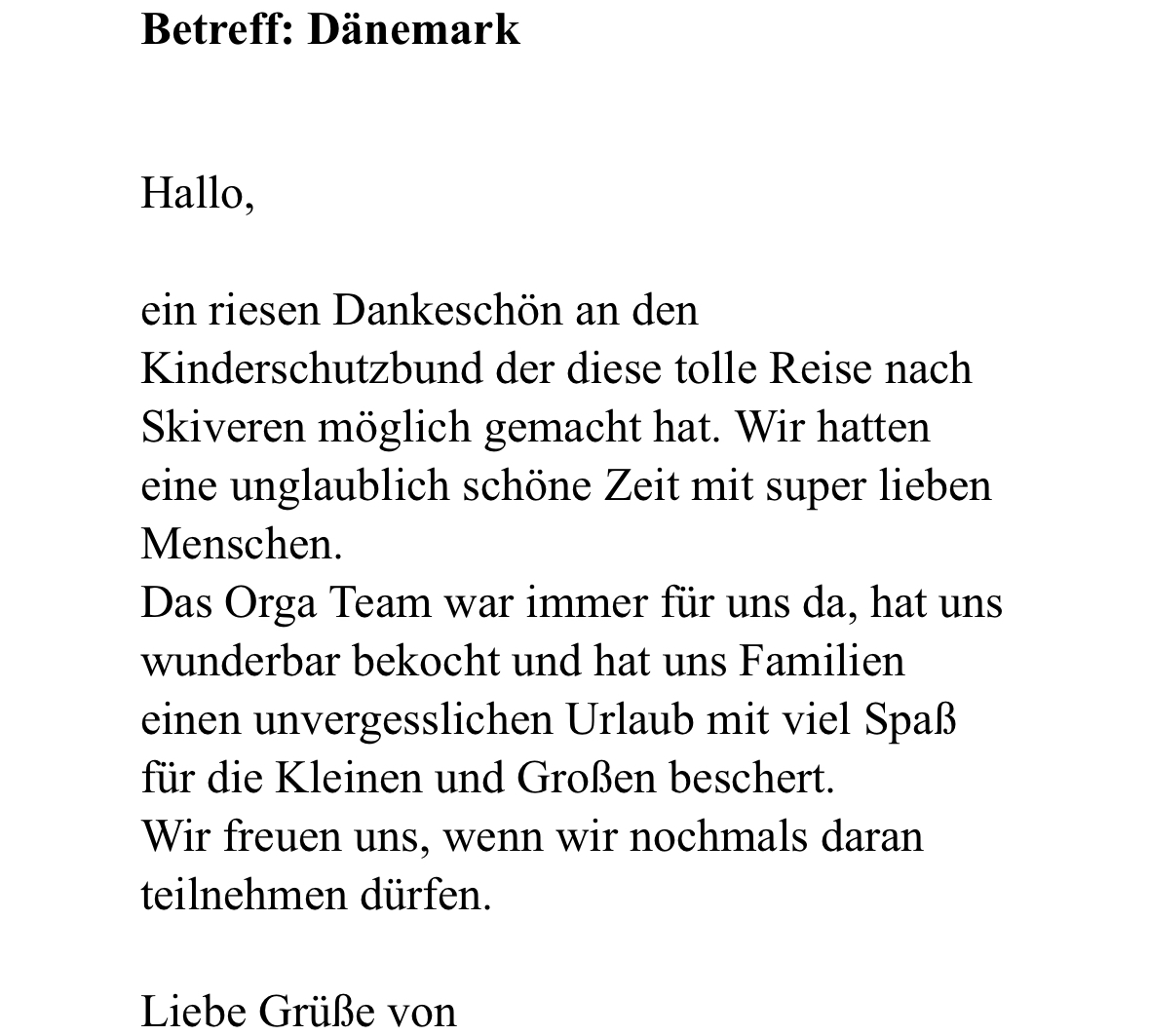 Finanziert wurde diese Reise vom Kinderschutzbund Rendsburg und wir danken herzlich allen Betreuerinnen und Betreuern, die mit Geduld, Ideenreichtum und Freude dafür gesorgt haben, dass die Kinder eine unvergessliche Zeit erleben konnten.