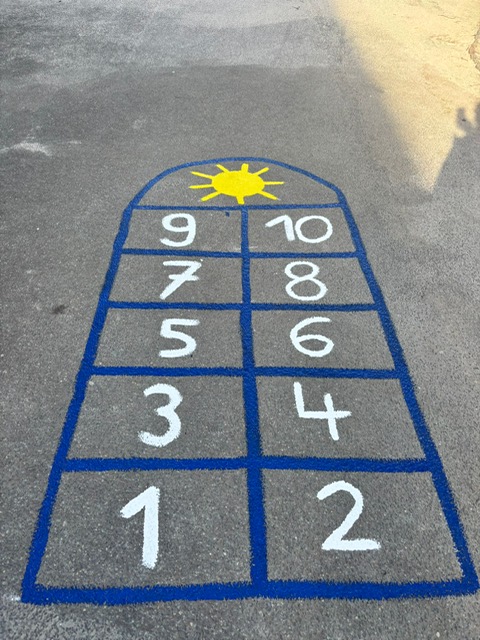 „Wir Lehrkräfte und die Schülerinnen und Schüler von der Grundschule Rotenhof in Rendsburg bedanken uns von Herzen für die finanzielle Unterstützung bei der Umsetzung unserer neuen Pausen-Hüpf-Spiele. In einer gemeinsamen Aktion haben wir ein Hüpfspiel auf dem Schulhof aufgemalt. Es werden noch weitere Spiele folgen, mit denen unsere Schülerinnen und Schüler ihre Pause sportlich bewegt verbringen können.