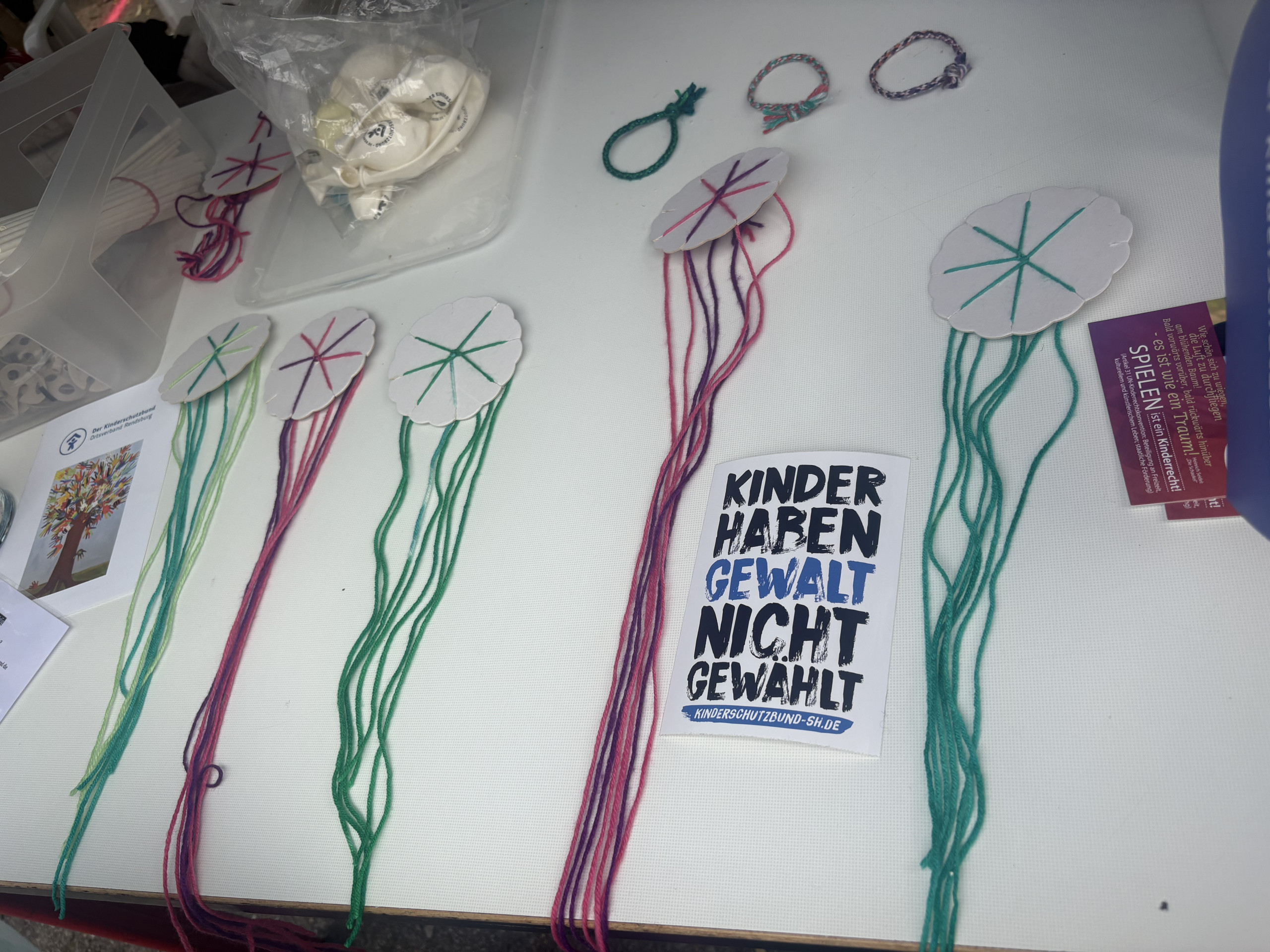 An unserem Stand konnten Kinder und Jugendliche kreative Armbänder gestalten, was mit großer Begeisterung angenommen wurde. Es war toll zu sehen, mit wie viel Freude, Konzentration und Fantasie die Kinder dabei waren. Auch viele Eltern haben interessiert zugeschaut, mitgemacht oder sich in entspannter Atmosphäre mit uns ausgetauscht.